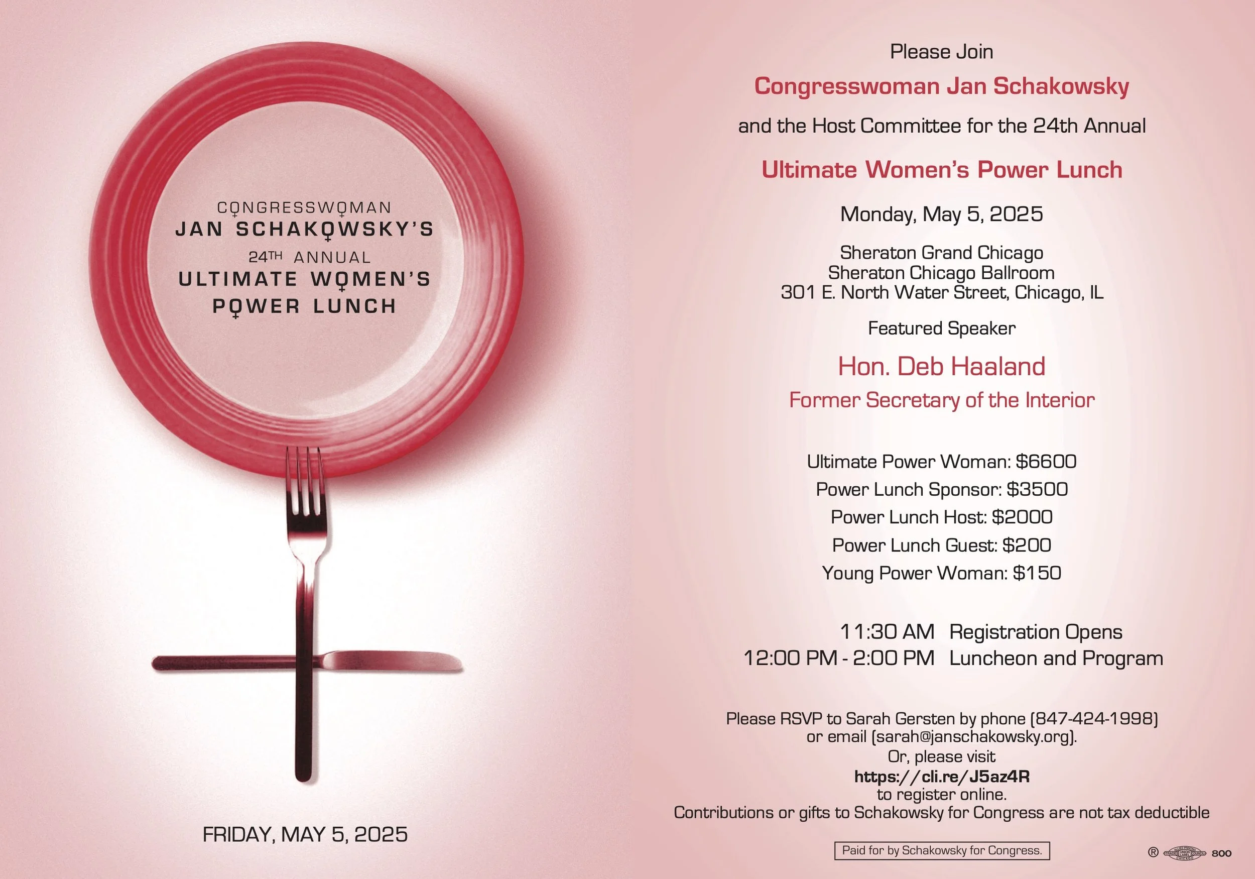 You're invited to join Congresswoman Schakowsky for her 24th Annual Ultimate Women's Power Lunch on Monday, May 5th!